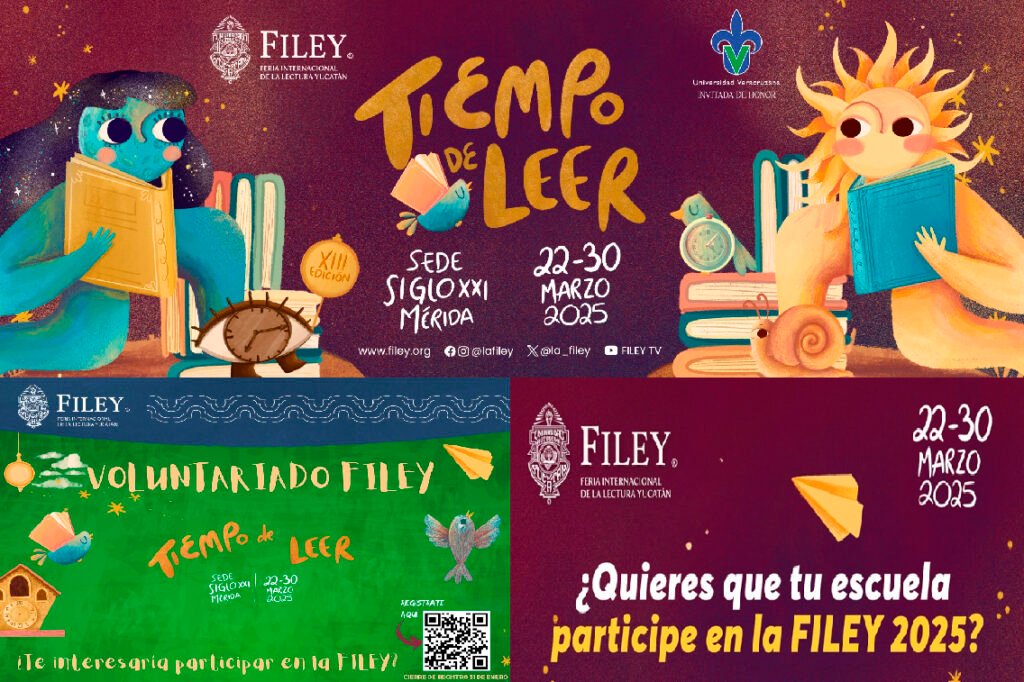 a Feria Internacional de la Lectura Yucatán (FILEY), en colaboración con el Programa Institucional de Voluntariado Universitario, extiende una invitación a las y los jóvenes interesados en formar parte del equipo de apoyo que participará en este evento, que se llevará a cabo del 22 al 30 de marzo de 2025.
